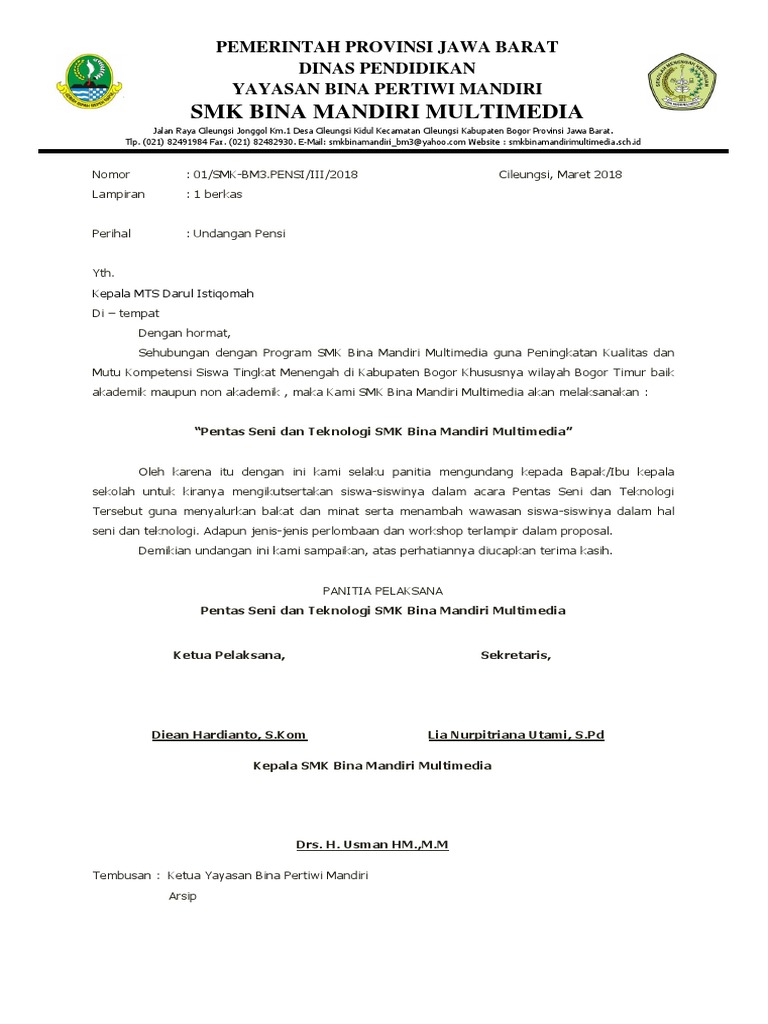 Bapak/ibu guru dan tata usaha di tempat. Surat undangan adalah surat yang dibuat dengan tujuan mengajak seseorang atau pihak lain untuk menghadiri sebuah acara tertentu. #2 contoh surat undangan resmi sekolah. Setelah dibahas mengenai beberapa contoh surat undangan resmi, dimulai dari surat undangan perusahaan, surat undangan pembagian raport sampai dengan surat undangan peresmian tempat, kini akan dilanjutkan dengan pembahasan untuk mengenal beberapa contoh surat undangan tidak. Pengertian surat undangan resmi menurut kbbi ialah surat yang dipakai untuk kebutuhan formal. Contoh surat undangan resmi terbaru dan terlengkap | disertai penjelasan lengkap. Banyak jenis surat undangan resmi yang dibuat untuk kebutuhan surat resmi. Berisi contoh surat undangan resmi perusahaan, organisasi, rapat resmi, dan kegiatan osis. Nama serta alamat pihak yang dituju, di bagian ini cantumkan nama dan alamat pihak yang akan kamu undang dalam kegiatan secara lengkap dan jelas. Jika anda bekerja di bagian administrasi kegiatan surat menyurat adalah hal yang biasa, dan membutuhkan sedikit. Surat undangan resmi untuk rapat, pertemuan atau sosialisasi resmi yang bisa anda gunakan sebagai contoh referensi untuk keperluan surat nama dan alamat pihak yang dituju jangan lupa untuk menyebutkan nama dan alamat pihak yang akan diundang dengan lengkap dan jelas, hal ini. Contohnya saja kamu ingin mengikuti kegiatan budaya banyumas seperti pementasan kentongan. Berikut kami berikan contoh surat undangan resmi yang bisa dijadikan referensi dalam pembuatannya.